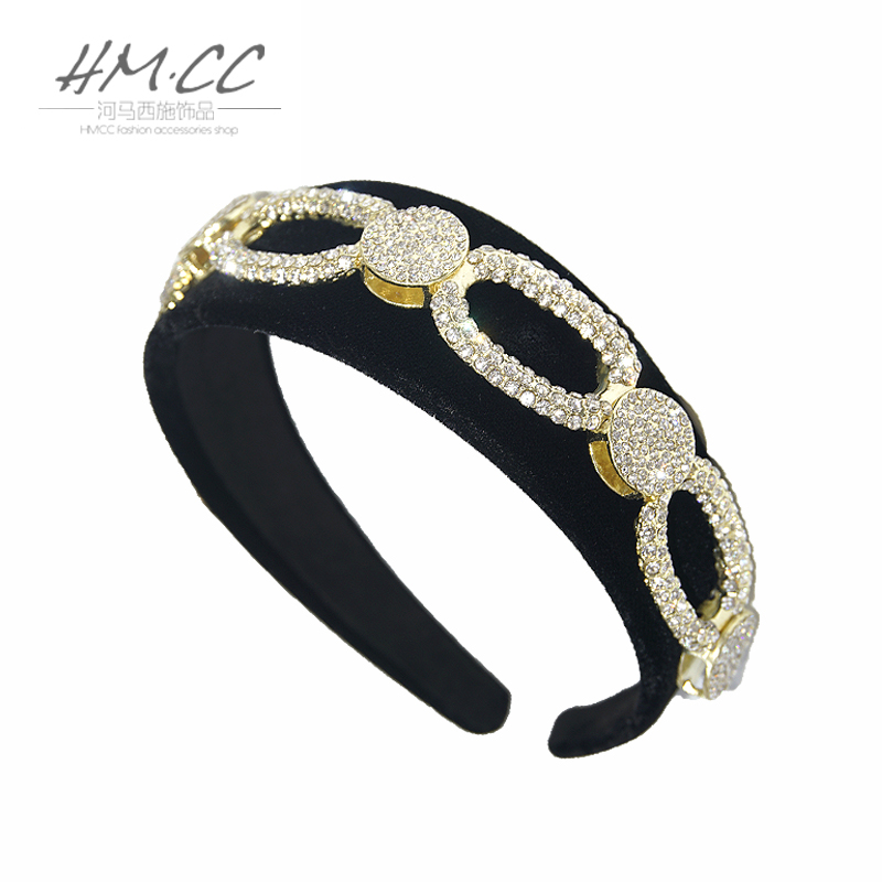 订制 设计款名媛气质 晚宴合金发箍法式复古水钻绒布百搭发饰女热门设计联盟服务商