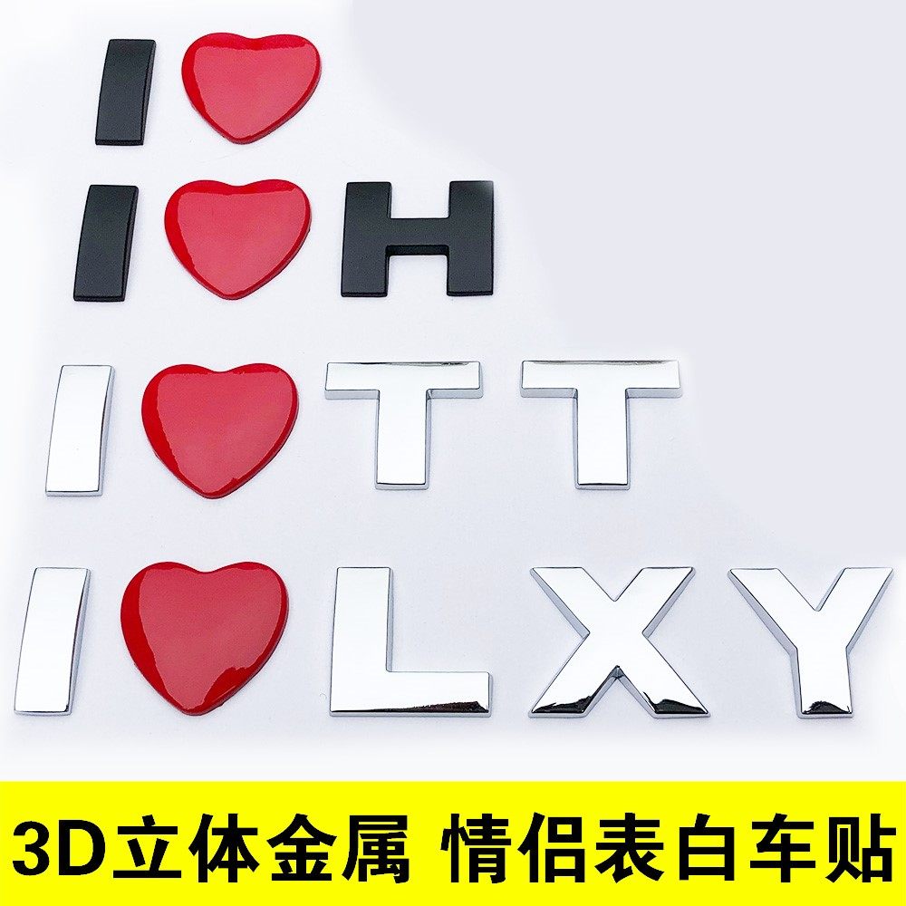 3D立体爱心形英文字母名字红心爱情侣告白表白汽车贴纸创意车尾标热门设计联盟服务商