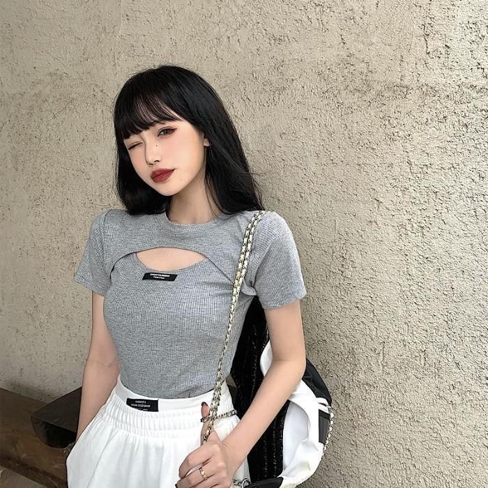 大码300斤短袖心机镂空t恤女夏胖mm240显瘦紧身辣妹上衣设计感潮热门设计联盟服务商