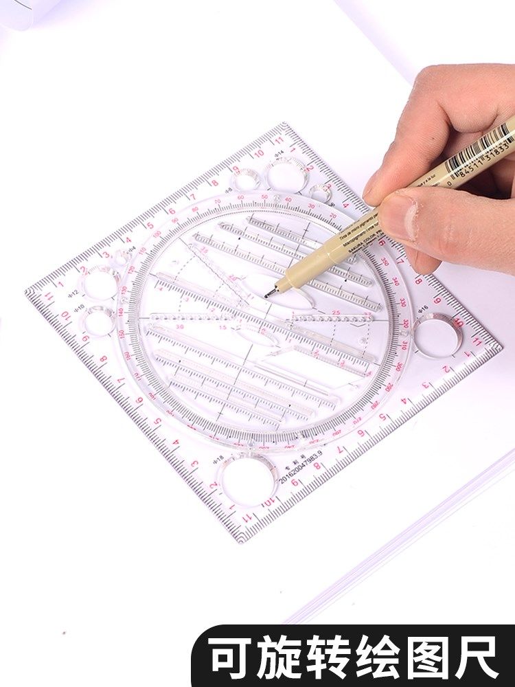 多功能绘图尺子套装数学几何图形尺画圆椭圆模板尺测量手账设计考热门设计联盟服务商