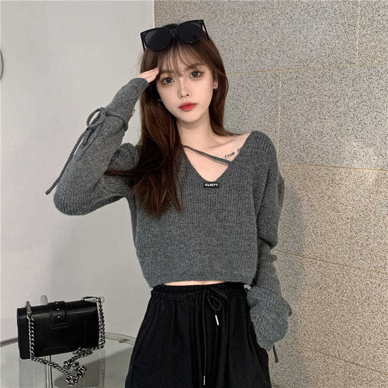 。女秋冬心机感新款短款版露肩系带韩设计2020针织毛衣宽松长袖小热门设计联盟服务商