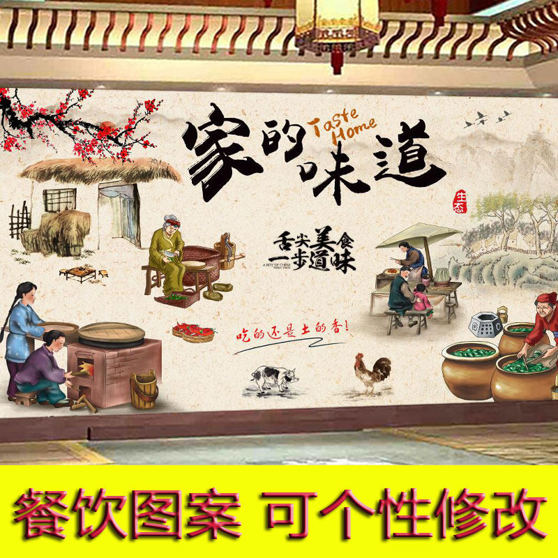 仿古店铺餐厅装饰壁画农家乐铁锅炖装修墙纸小吃火锅饭店餐馆壁。热门设计联盟服务商