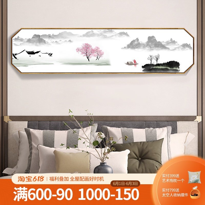 新中式卧室床头装饰画客厅禅意水墨山水画办公室横幅现代简约挂。热门设计联盟服务商