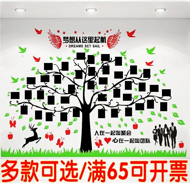 公司办公室大树照片墙贴学校教室企业文化墙相框员工风采装饰贴纸热门设计联盟服务商