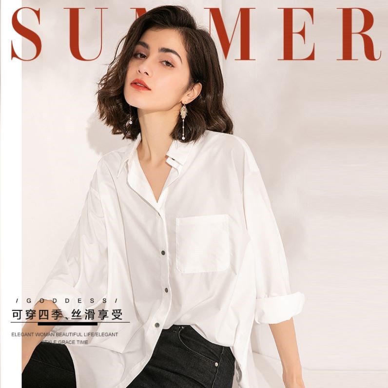 宽松外穿白衬衫女设计感小众轻熟百搭法式衬衣秋时尚洋气垂感上衣热门设计联盟服务商