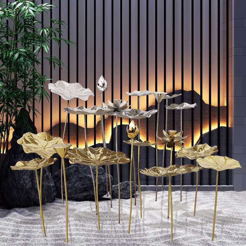 不锈池荷花铁f艺荷叶展塑落地摆件水钢会所酒店雕馆金属软装装饰热门设计联盟服务商