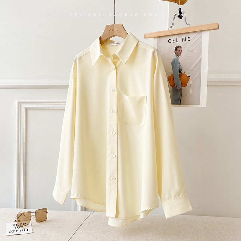 设计感小众法式奶油淡黄色衬衫女夏季薄宽松慵懒风垂质感鹅黄上衣热门设计联盟服务商