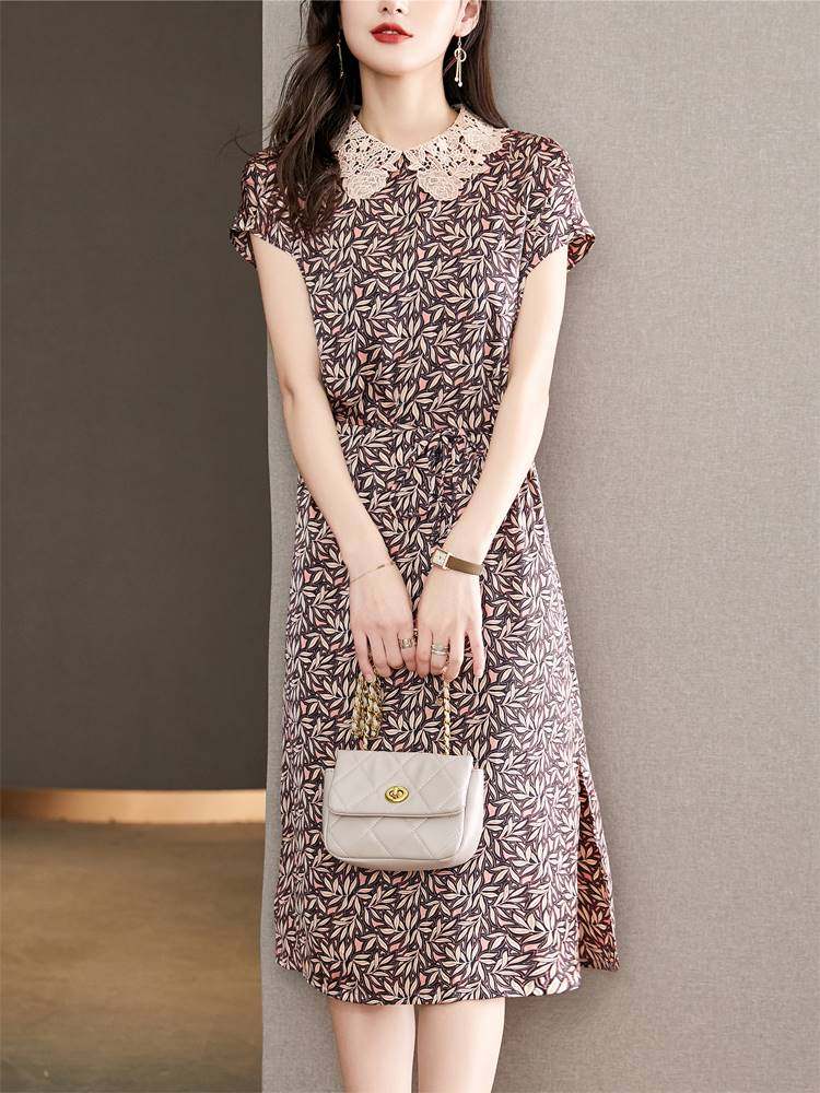 娃娃领连衣裙设计感小众夏季气质a字显瘦轻熟风炸街印花雪纺裙子热门设计联盟服务商