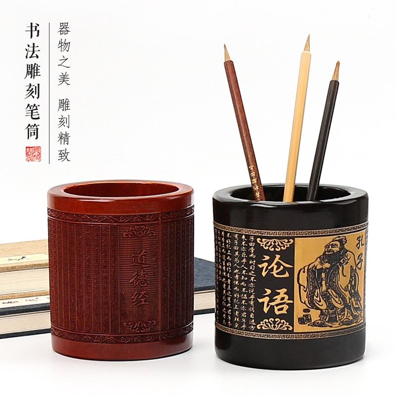 异朽阁圆形笔筒大容量竹雕创意时尚摆件复古中国风笔架办公室个性热门设计联盟服务商