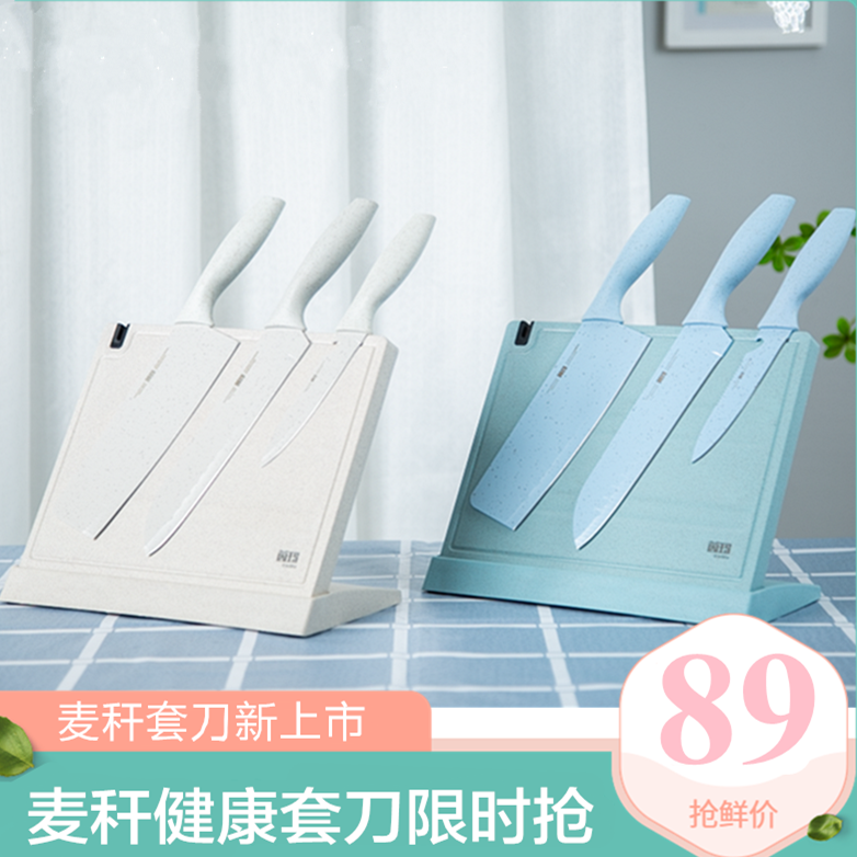 出口宝宝辅食刀具麦秆厨房菜刀菜板二合一套装家用宿舍水果刀组合热门设计联盟服务商