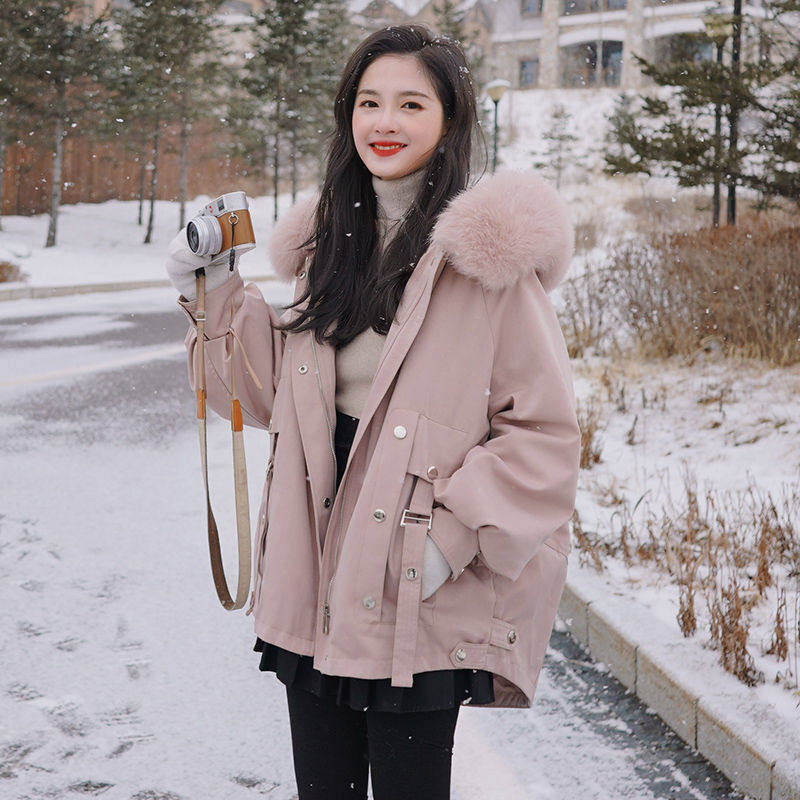 粉色派克棉服女ins冬季2021款棉衣中长款百搭宽松工装加厚外套热门设计联盟服务商