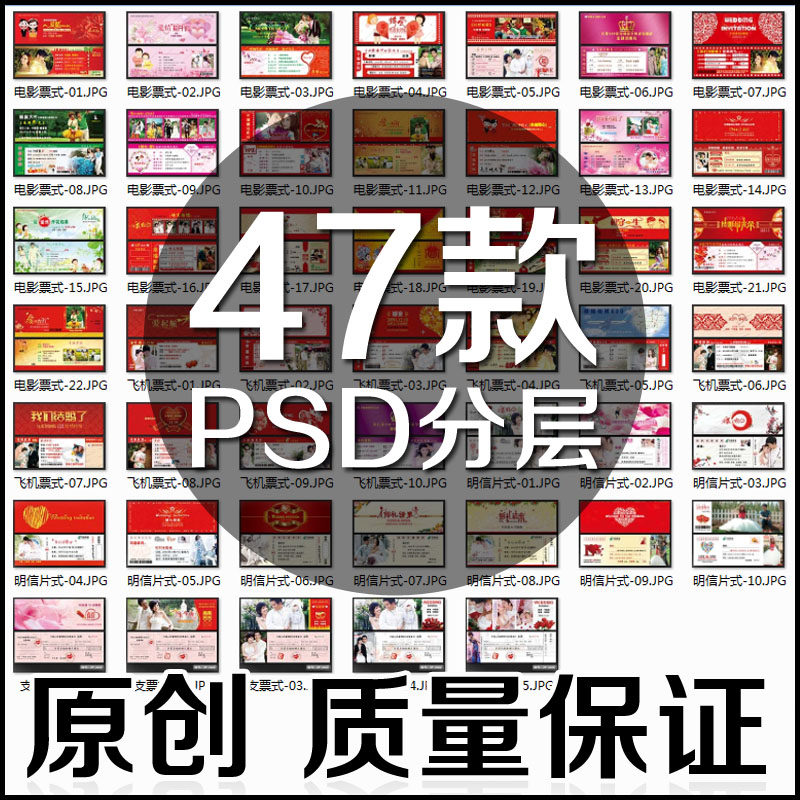 个性票据式结婚请柬PSD分层模板明信片式飞机票式电影票式支票式热门设计联盟服务商