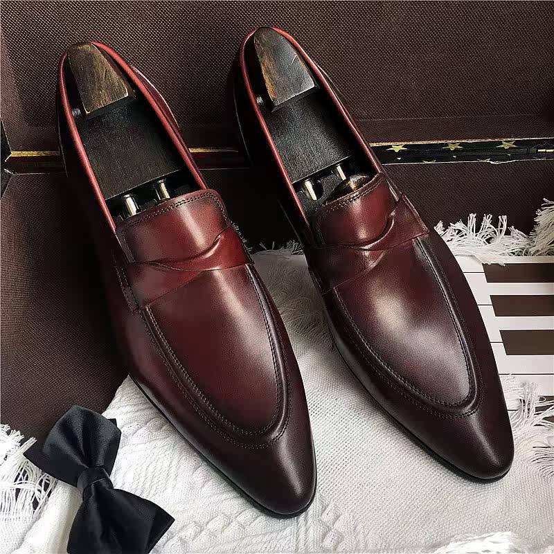 高档正品牌新款真皮套脚尖头单皮鞋男英伦商务正装鞋子头层牛皮一热门设计联盟服务商