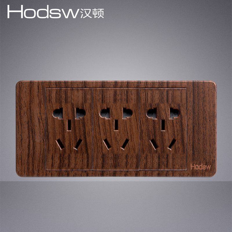 汉顿BE木纹色复古拨杆开关中式电源插座面板家装工装套装暗装五孔热门设计联盟服务商