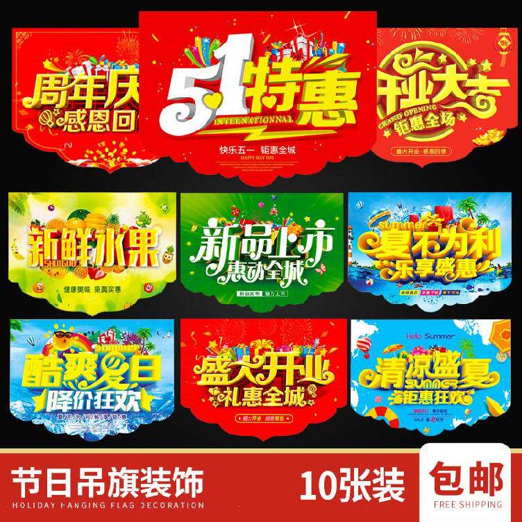 挂件装饰品室内盛典布置数码店吊旗吊顶女鞋店彩旗51节日吊旗定制热门设计联盟服务商